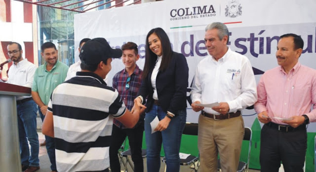 Entrega de becas rurales a jóvenes estudiantes de comala, por parte del gobierno del estado